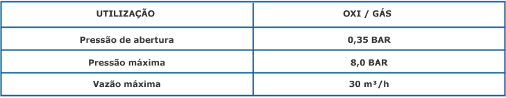 São normalmente válvulas de retenção a seco e foram projetadas para serem conectadas nas entradas de maçaricos e saídas de reguladores.